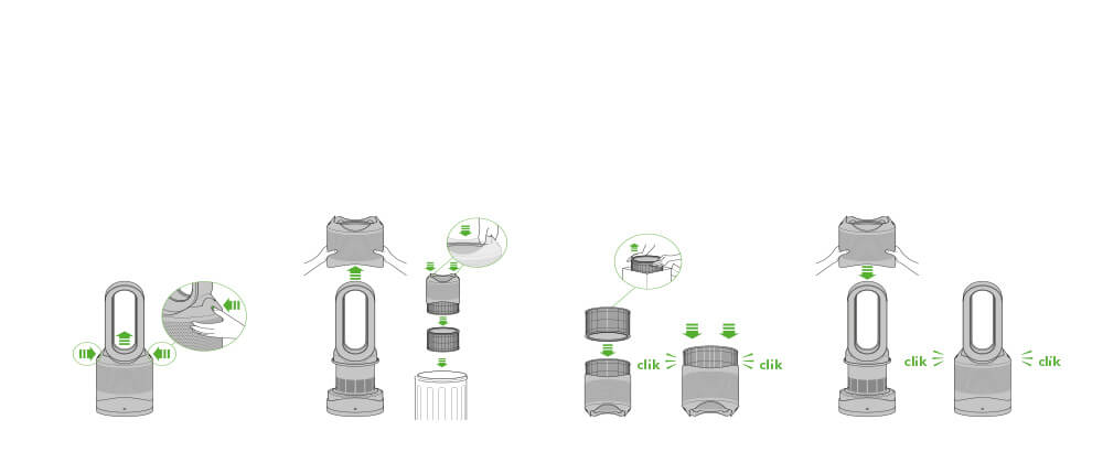 Před výměnou filtru se ujistěte, že je čistička vypnutá. Po výměně filtru nezapomeňte stisknout a po dobu 6 sekund přidržet tlačítko vypínače (On/Off) – tímto krokem vynulujete počitadlo životnosti filtru.