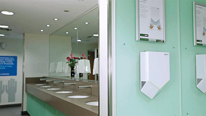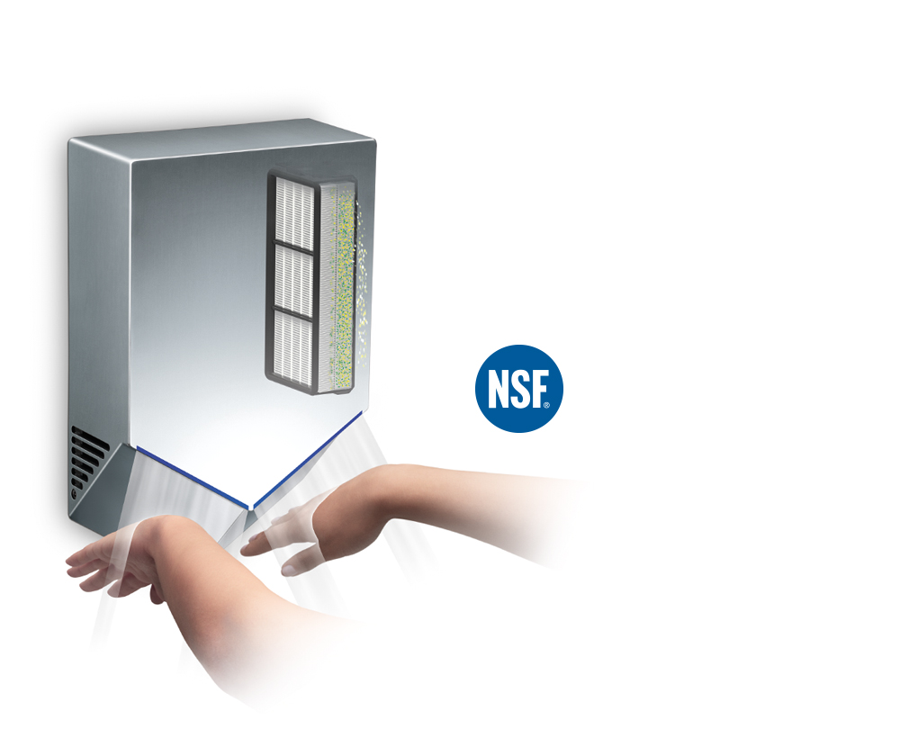 Technologie Airblade™ funguje jinak. Každou sekundu je do výstupních otvorů o šířce maximálně 0,55 mm vháněno až 20 litrů vzduchu filtrovaného přes HEPA filtr. Zde se vytváří vzduchové ručníky proudící rychlostí 690 km/h, které hygienickým způsobem osuší ruce za pouhých 12 sekund.