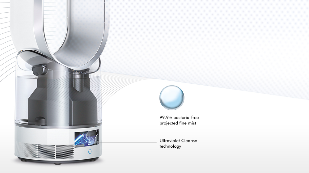 Použitím patentované technologie Ultraviolet Cleanse, vystavuje zvlhčovač vzduchu Dyson každou kapku vody z nádrže ultrafialovému světlu. Tento tříminutový cyklus zabije 99,9% bakterií ve vodě včetně E-coli bakterií, dříve než jakákoliv vlhkost opustí spotřebič.